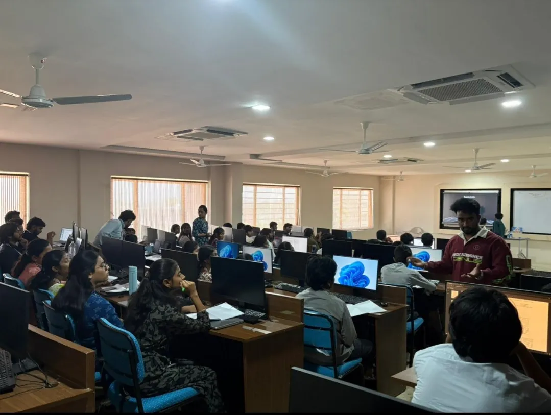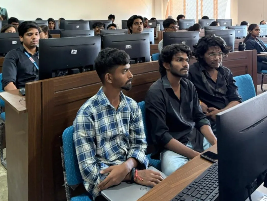 The session was delivered by Mr. Vikram Goud and Mr. Karteekh from EC-Council, who shared valuable insights on the importance of cyber security in the digital era and the various cyber threats faced today. The speakers explained how cyber attacks occur and demonstrated some of the tools and techniques that hackers may use to compromise systems, helping students understand the importance of strong cybersecurity practices and preventive measures.