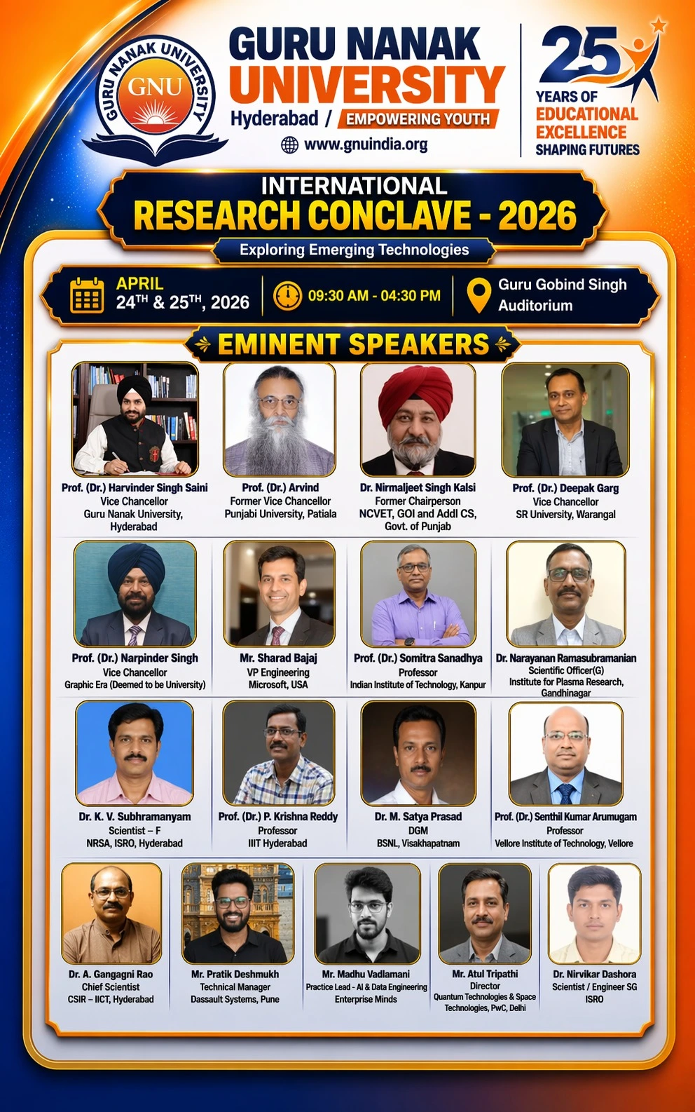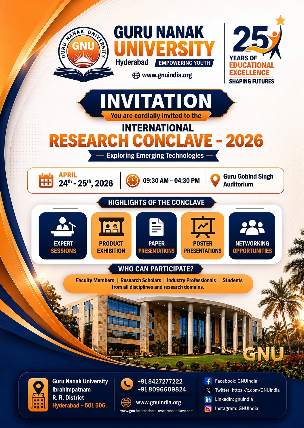 Guru Nanak University, Hyderabad, inaugurated its two-day International Research Conclave 2026 - IRC 2026 on April 24, 2026, at the Guru Gobind Singh Auditorium. Themed “Exploring Emerging Technologies,” the conclave brings together eminent academicians, industry leaders, policymakers, and researchers from across the globe to deliberate on cutting-edge advancements and collaborative innovation.
