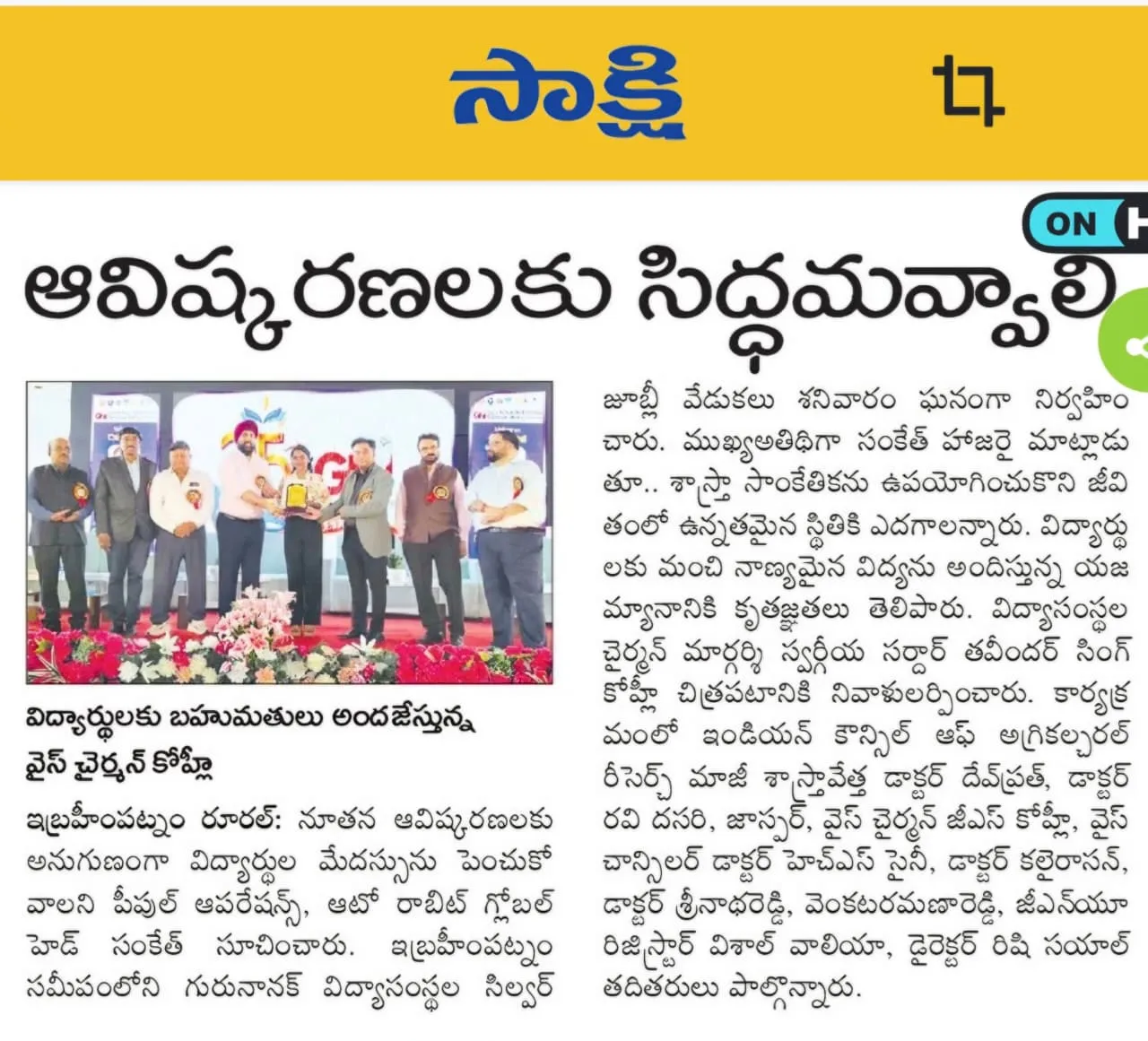 Celebrating 25 successful years in the field of education, the management and guests paid heartfelt tributes to the beloved Chairman and visionary, Late Sardar Tavinder Singh Kohli. Speakers fondly recalled his dedication, foresight, and service-oriented leadership, which laid a strong foundation for the institutions and enabled thousands of students to pursue quality education. In his memory, the management announced the institution of annual awards for meritorious students, a gesture widely appreciated by the dignitaries present.