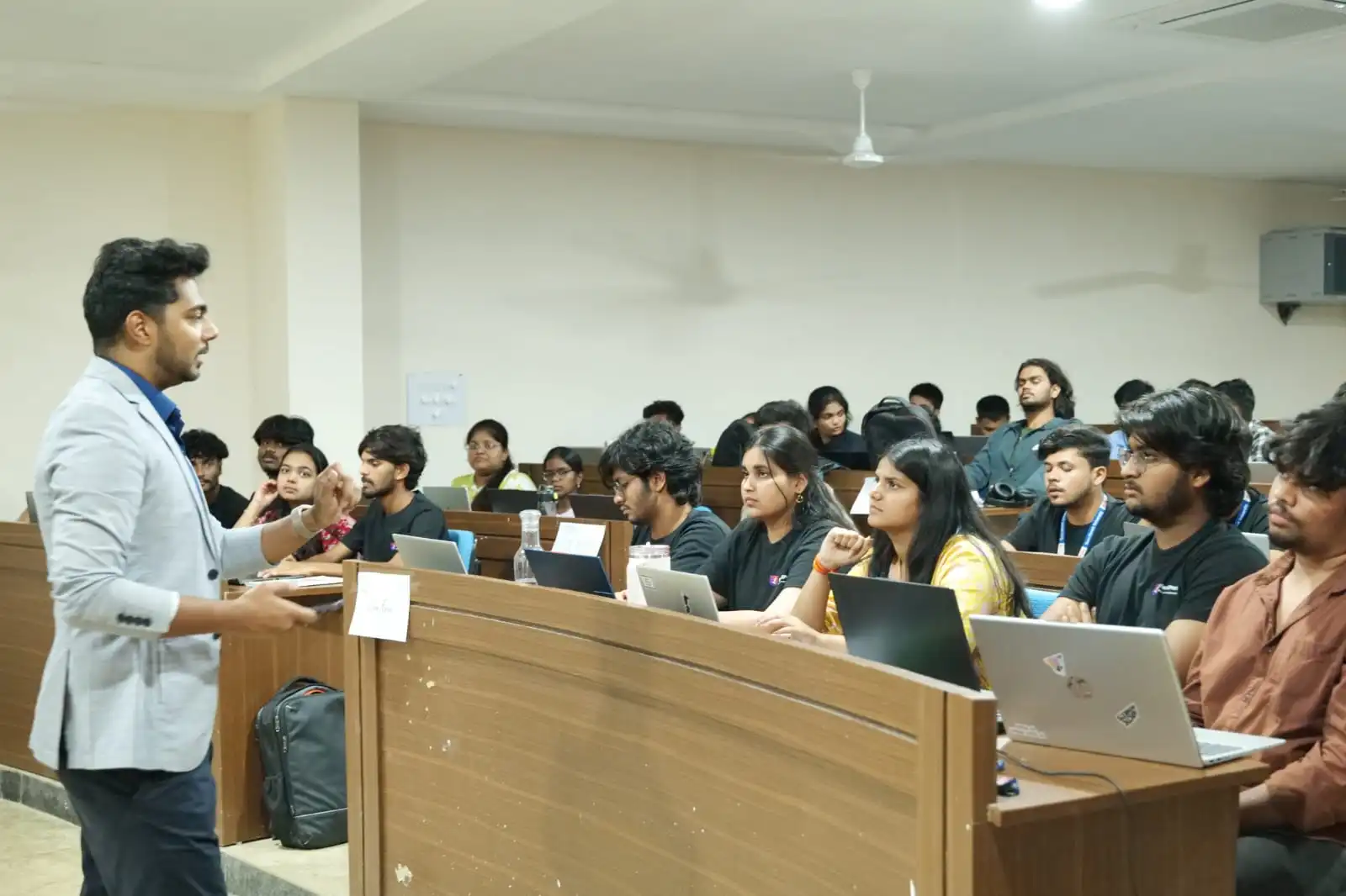 The session was delivered by Mr. Vikram Goud and Mr. Karteekh from EC-Council, who shared valuable insights on the importance of cyber security in the digital era and the various cyber threats faced today. The speakers explained how cyber attacks occur and demonstrated some of the tools and techniques that hackers may use to compromise systems, helping students understand the importance of strong cybersecurity practices and preventive measures.
