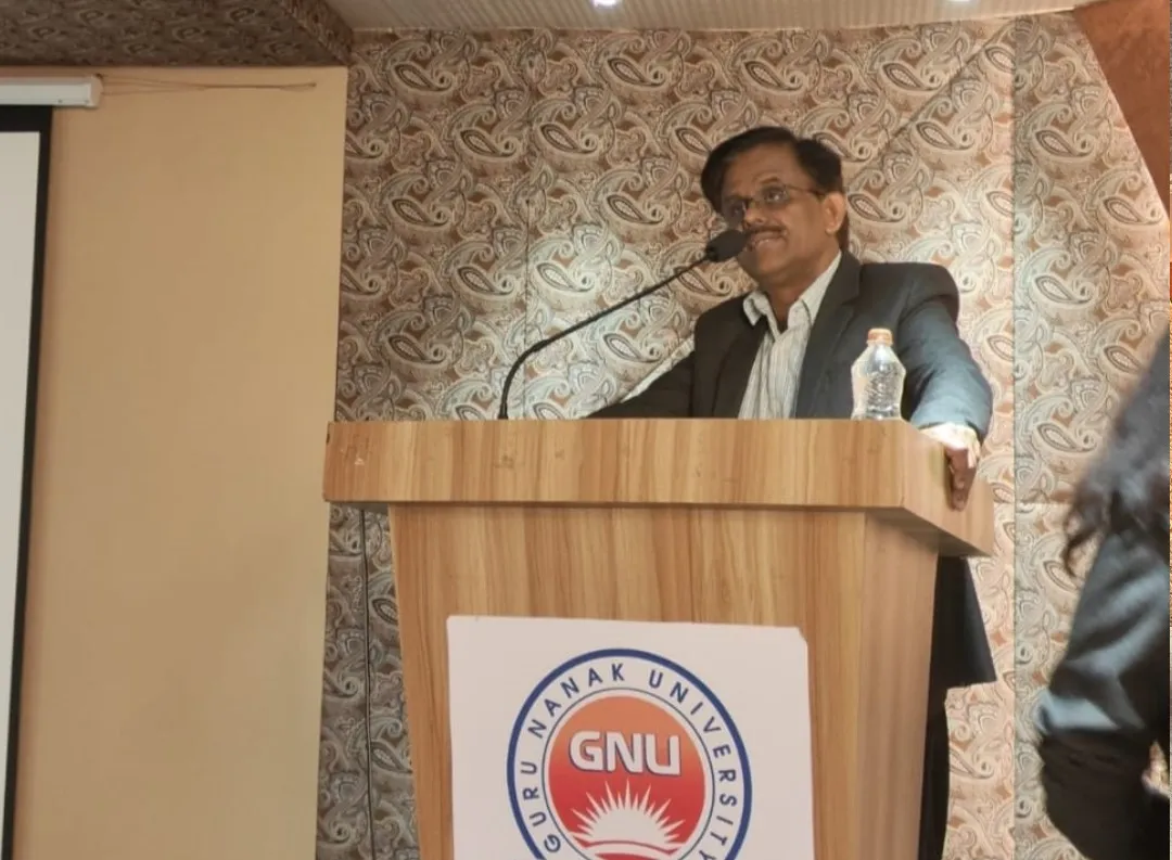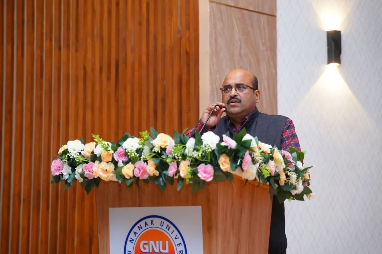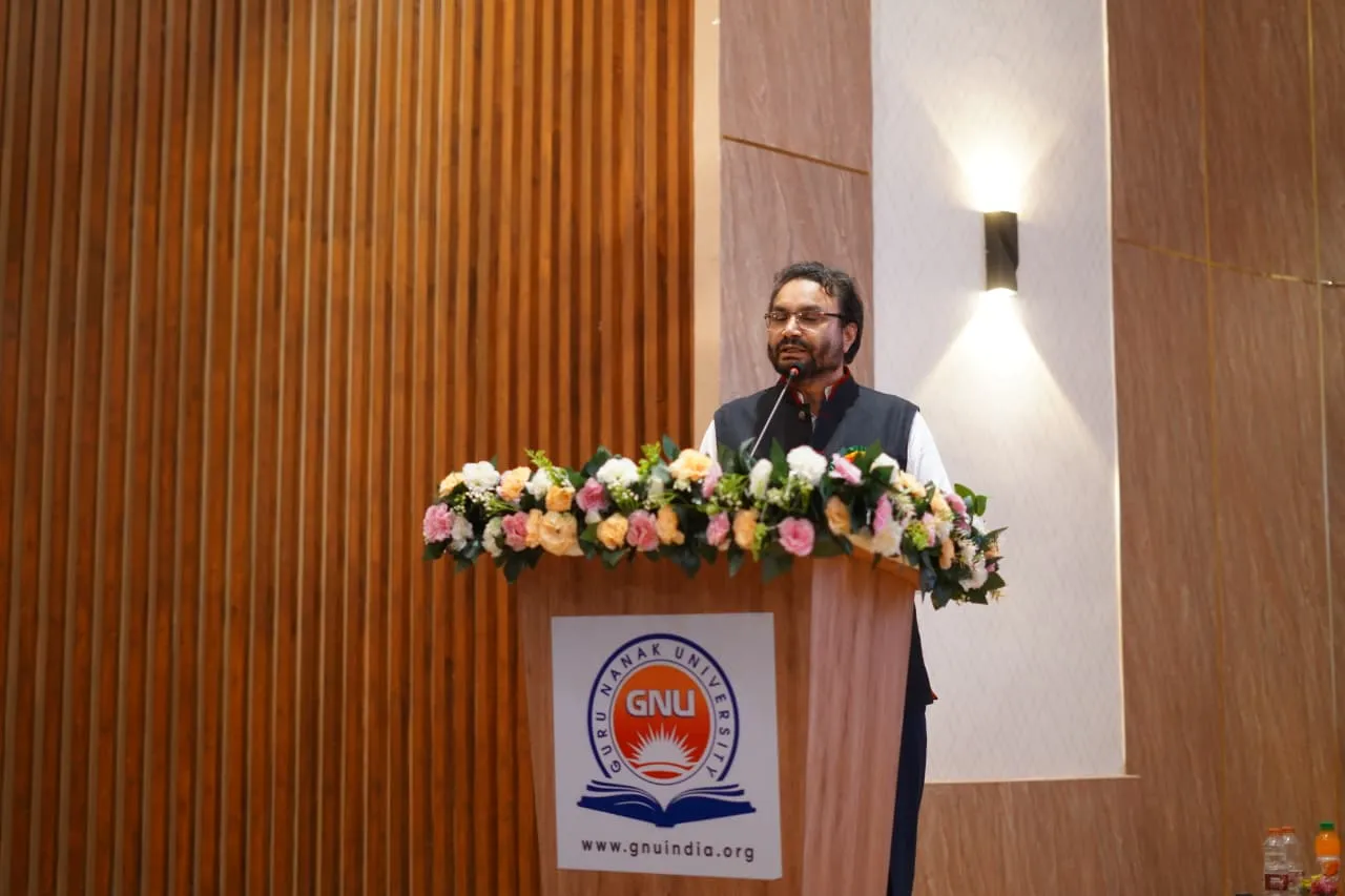 Dr. H.S. Saini, Vice Chancellor of Guru Nanak University and Managing Director of Guru Nanak Institutions, in his address emphasized the importance of staying aligned with emerging technologies, innovation, and future-focused learning. He encouraged students to utilize their intellectual potential to contribute to new innovations and assured full institutional support. He also urged faculty members to actively mentor and guide students, inspiring them to serve society responsibly.