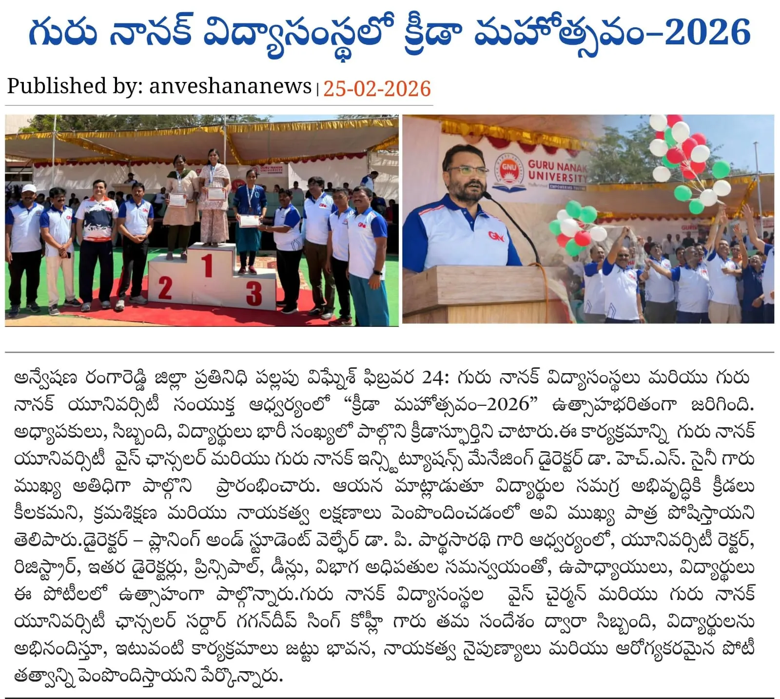 Khel Mahotsav – 2026 Celebrated with Great Enthusiasm at Guru Nanak Institutions and Guru Nanak University